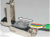 12. 將電纜推入如圖所示的位置圖片(見箭頭)。按下接觸元件達(dá)到極限停止接觸電線。